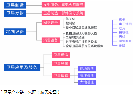 卫星通信可以传输电话、电报、传真、数据和电视等信息,可以承担洲际通信业务和电视传输;卫星导航即我国的北斗导航主要提供时间/空间基准和所有与位置相关的实时动态信息,可以应用于航空、航海、通信、人员跟踪、消费娱乐、测绘、授时、车辆监控管理、和汽车导航与信息服务;卫星遥感主要提供对地球、天体以及空间环境有关的监测信息,可以用于国土、环保、应急、水利、气象、海洋、农业、林业、军队、金融保险以及大众消费领域。