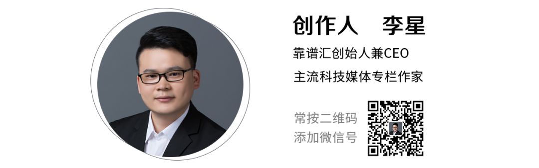 作者簡介:靠譜的阿星(李星),公衆號:靠譜的阿星,知名科技自媒體&媒體專欄作家,外國哲學碩士,靠譜匯創始人;專注于互聯網商業模式研究,寫文章力求透徹落地,多見于主流媒體;榮獲2017年钛媒體年度作者最具人氣獎,2018年人人都是産品經理年度作家,搜狐2018産業風雲年度自媒體,CMO訓練營導師兼專業合夥人。歡迎交流合作,個人微信綁定QQ號:1598145405