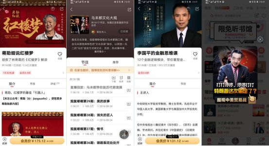(2)各大平台之間已經對于網紅大V、知名老師形成了平台的“獨家包攬”,並在黃金流量位置給予推薦,由于網紅本身數量有限,知識付費平台則開始向其他有限的IP資源繼續跑馬圈地。