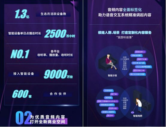 以往用戶購買一份内容通常會在APP之中收聽,而伴隨智能音箱的普及化,用戶還能夠在睡前或者開車時收聽内容,除此以外,APP里的會員數據與微信小程序、百度智能小程序之中可以打通,同一份産品消費的使用場景多了三個以上,會員的使用頻次、時長以及粘性也大幅度提升。這也意味著,那些沒有更強産品開放能力中小知識付費平台的使用體驗也沒有辦法和頭部平台之間競爭。據悉,蜻蜓FM全場景生態月活躍用戶數達到1.3億,全年增長近30%,智能設備單日收聽總時長達2500萬小時,接入智能設備9000萬台,合作夥伴600家;主打開源化的蜻蜓FM音頻生態在各平台中内容收聽率、播放量及播放時長三大數據均居行業第一。