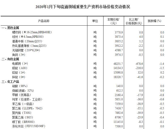 中國網財經2月4日訊 據國家統計局網站消息,國家統計局今日發布了2020年1月下旬流通領域重要生産資料市場價格變動情況。據對24個省(區、市)流通領域9大類50種重要生産資料市場價格的監測顯示,2020年1月下旬與1月中旬相比,9種産品價格上漲,20種下降,21種持平。其中,生豬(外三元)價格環比漲2.2%。