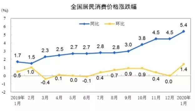 特殊時期,國家統計局發布1月份物價數據。2020年1月份居民消費價格(CPI)同比上漲5.4%,工業生産者出廠價格(PPI)同比上漲0.1%。