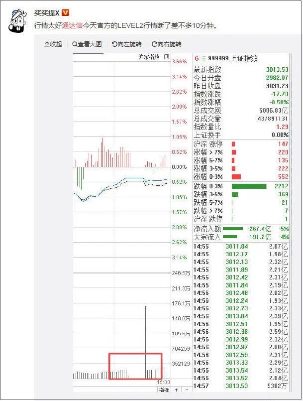 就在收盤前15分鍾,牛市一幕重現!多位網友反映稱,通達信、同花順等交易軟件紛紛閃崩,其中通達信崩潰時間長達10分鍾。