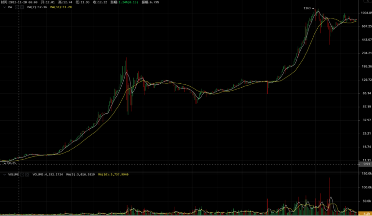 這里有幾張圖可以給大家複盤一下前兩次的減半:根據減半行情的曆史經驗,第一次減半處于2012年11月28日,而真正的大漲行情,半年後才來。