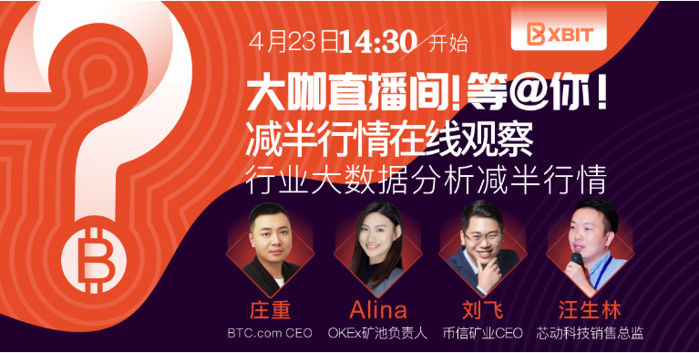 4月23日,由XBIT出品的第四期AMA線上直播分享正式開始,本次直播邀請了四位重量級嘉賓,他們分別是:BTC.com CEO莊重、OKEx礦池負責人Alina、幣信礦業CEO劉飛、芯動科技銷售總監汪生林。XBIT將與四位嘉賓從行業大數據層面展開深入探討,内容涵蓋從數據角度分析減半後的市場、疫情對新礦機生産與部署的影響、目前礦池的格局、嘉賓投資心得分享等。