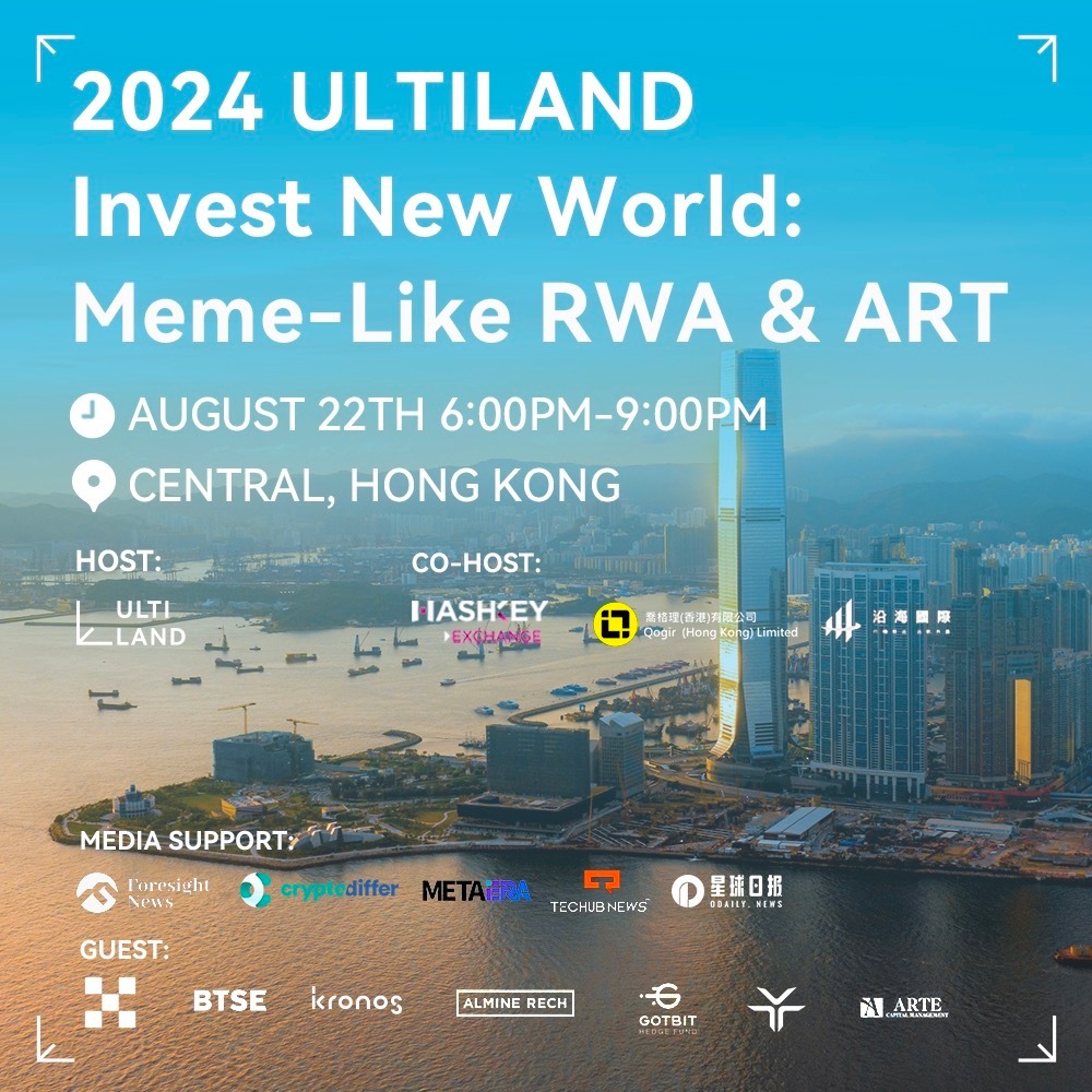 ULTILAND Invest New World : Meme-like RWA & ART 將於 8 月 22 日 18:00 - 21:00 在香港島舉行,