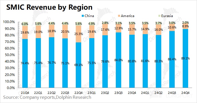 中芯國際重新調整了地區收入分佈的口徑,從原來的 「北美洲/中國内地及香港/歐洲及亞洲」 調整成了現在的 「中國區/美國區/歐亞區」。由於口徑的調整,數據上略有差異。