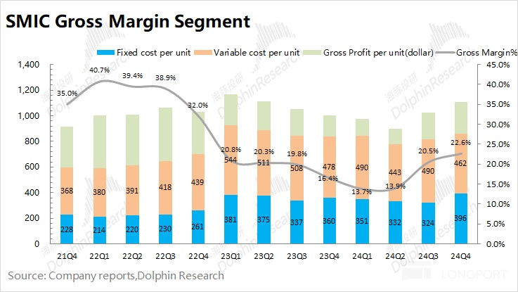 2024 年第四季度中芯國際的毛利率為 22.6%,環比提升 2.1pct,好於市場一致預期(19.1%),超出指引區間上限(18-20%)。
