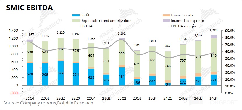 從 EBITDA 角度看,本季度中芯國際稅息折舊及攤銷前利潤 12.8 億美元,繼續提升。