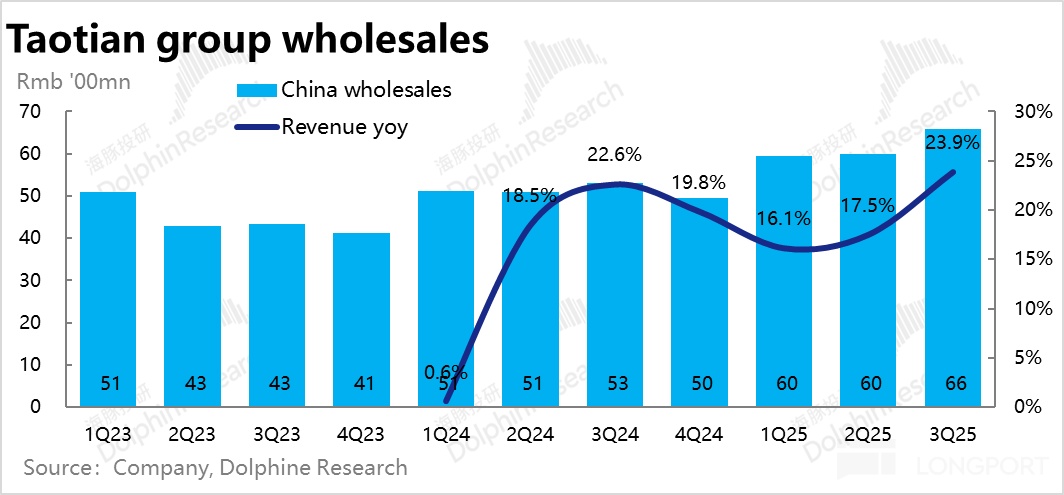 最元老的 1688.com批發業務,作為淘天 「性價比」 打法的一個主要落腳點,在轉型 2C 模式以及作為跨境電商供貨源的帶動下,本季度收入同比增長 23.9%,增長繼續提速。