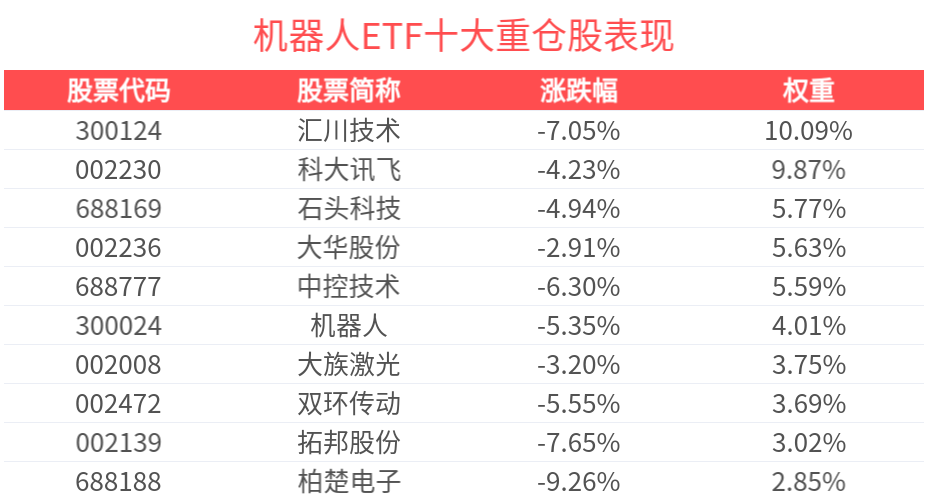 2025年2月28午後機器人板塊延續下跌,截至13:38,機器人ETF(562500)下跌6.27%,回調或迎佈局良機。持倉股方面,偉創電氣領跌12.88%,禾川科技下跌11.62%,三豐智能下跌11.13%,綠的諧波下跌10.60%,步科股份下跌10.25%。最新盤中成交額已達19.88億元,換手率20.04%。