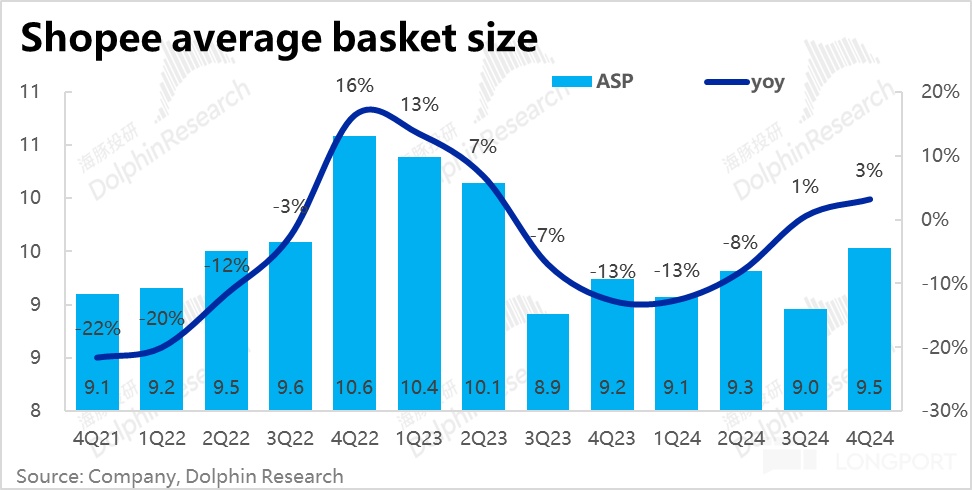 拆分價量來看,本季訂單量同比增速為 20%,環比放緩 4pct,量的增長是放緩了的。但客單價的止跌回升 3%(由於直播電商和價格補貼等影響消退)接棒了對 GMV 增長的推動。