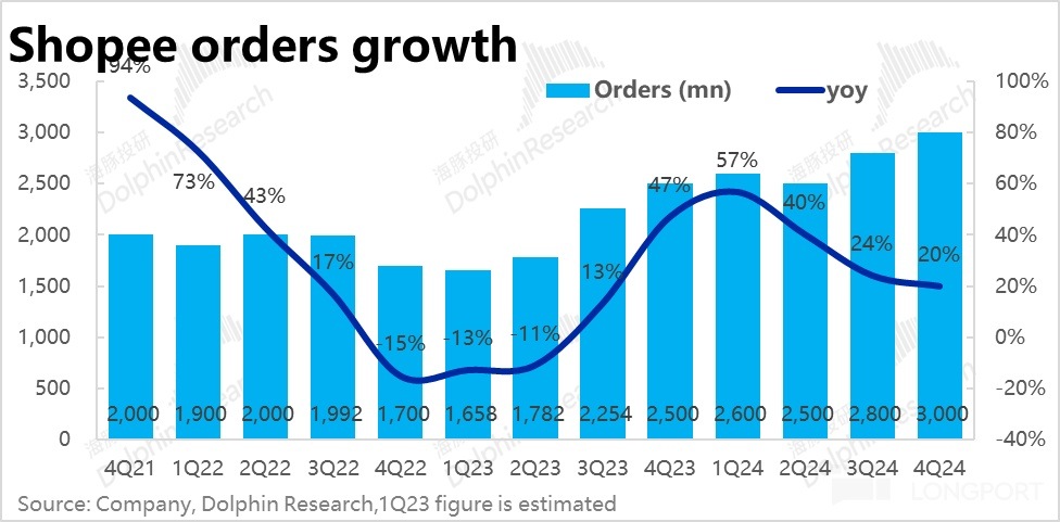 收入層面,本季 Shopee 營收同比增長 41%,大幅強於市場預期 35% 的增長,環比同樣僅降速 2pct。可見收入的超預期主要是來自 GMV 增長超預期的傳導。
