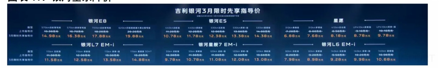 銀河基於現有車型推出 3,000-6,000 元不等的降價幅度;