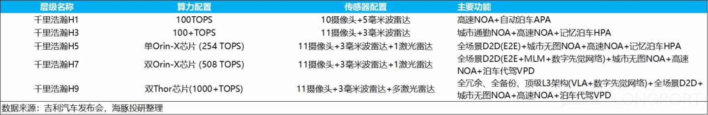 對標比亞迪天神之眼 C: 吉利 H1+H3 方案(100 TOPS)