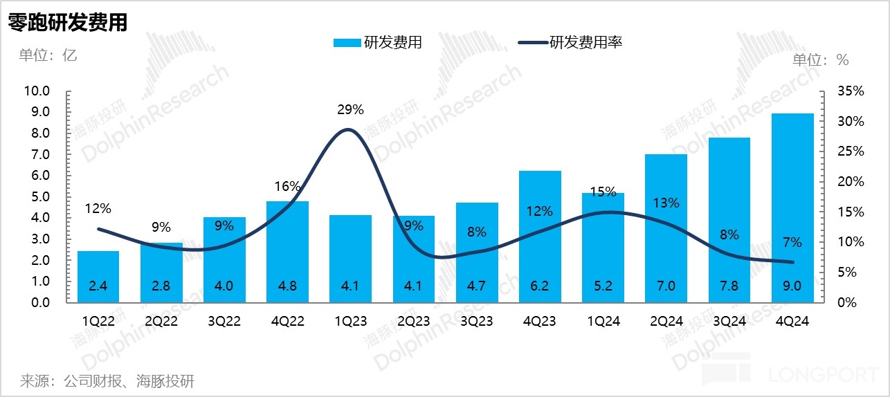 四季度零跑研發費用 9 億,環比繼續增長 1.2 億,大幅超出市場預期 6.2 億