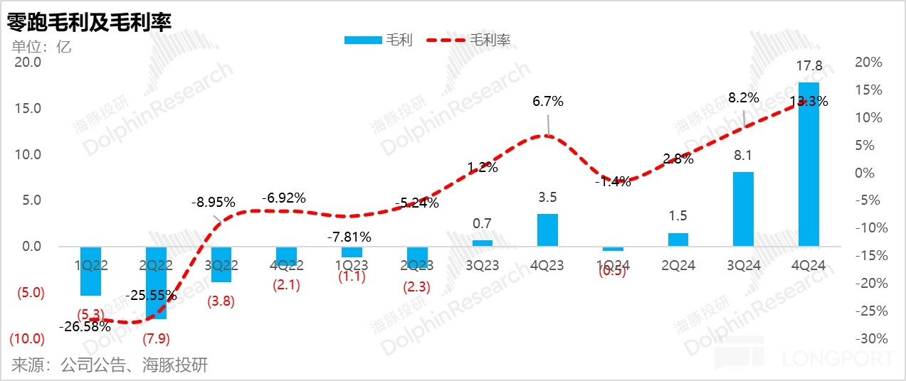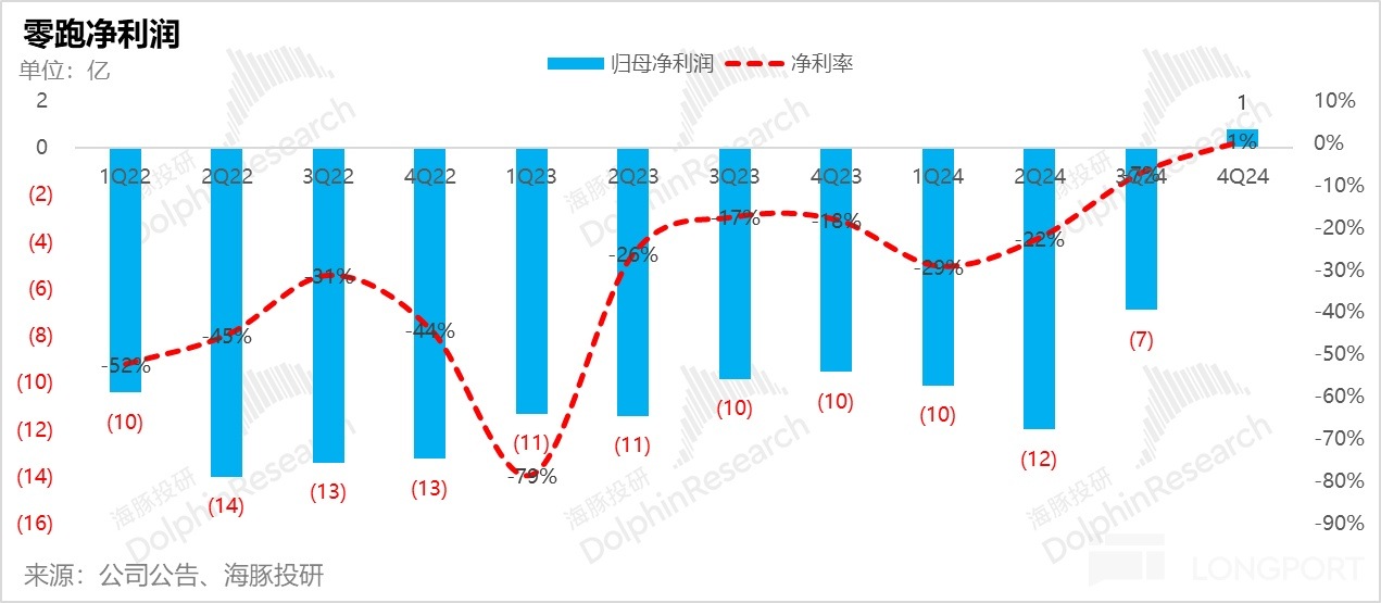 但需要注意一季度由於新車 B10 在 3 月才開始上市,4 月交付,所以零跑對 2024 款係列舊款車型開始降價促銷,以及銷量在 1-2 月國補還沒在所有城市完全落地的情況下,預計一季度的毛利率可能會相比 Q4 有所回調。