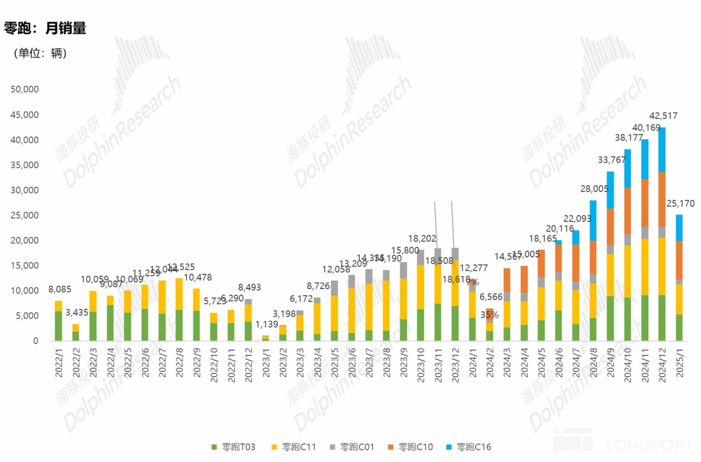 (c) 以舊換新補貼的持續,繼續利好車型價位較低的車企零跑,而零跑今年仍然專注於推出高性價比車型(主力價格帶位於 10-20 萬元,相比 2024 年價格帶繼續下沉 - 新車主要集中在價位段更低的 B 係列).