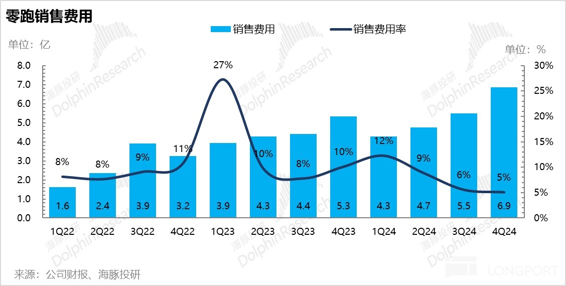 零跑四季度銷售費用 6.9 億, 環比增長 1.4 億,超出市場預期 4.4 億,主要因為銷售人員增加,及廣告宣傳投入力度增加。