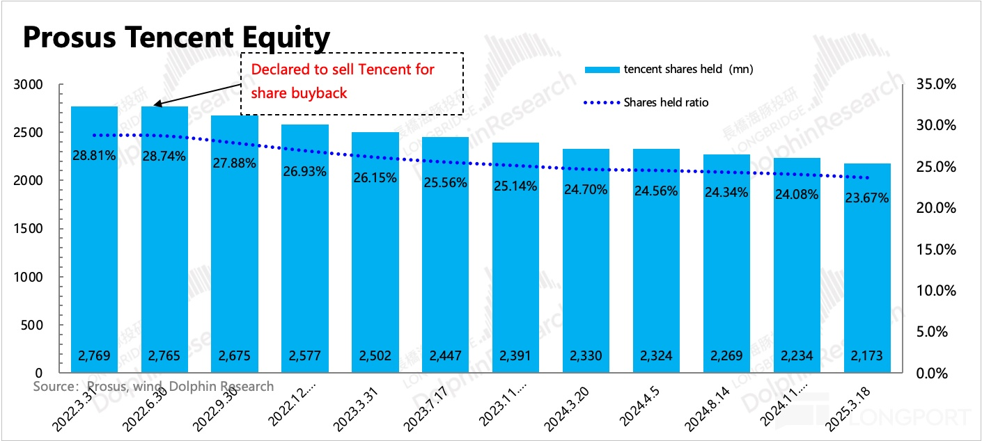 四季度大股東 Prosus 仍在默默減持,趁著南下資金、部分外資加倉之際,Prosus 減持規模也在按承諾計劃(不高於當日成交額的 5%)順勢提高。