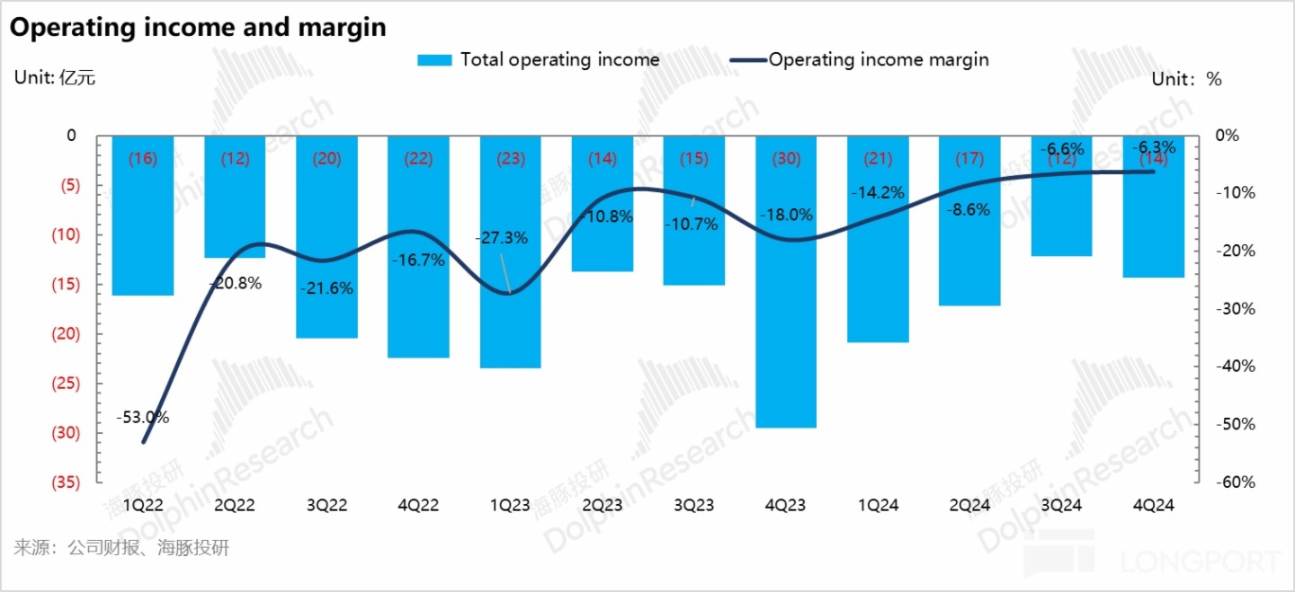 本季度經營虧損-14 億,低於市場預期-8 億,而經調整後淨利潤-9 億,同樣也低於市場預期-7 億,雖然本季度整體毛利率端超市場預期,但因為研發費用的高增,最後經營虧損和經調整後淨利仍雙雙不及市場預期。