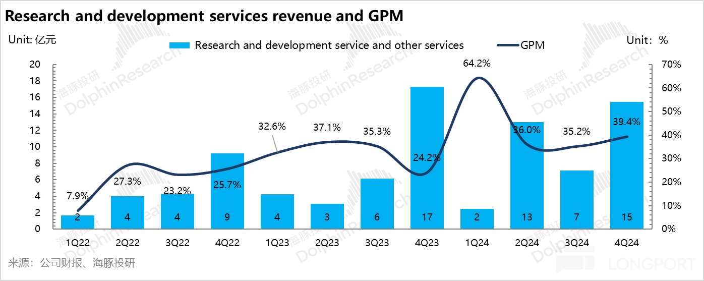 四季度研發服務收入 15.5 億,相比上季度環比增加 8.3 億,研發服務毛利率 39.4%,相比上季度環比增加 4.2 個百分點。