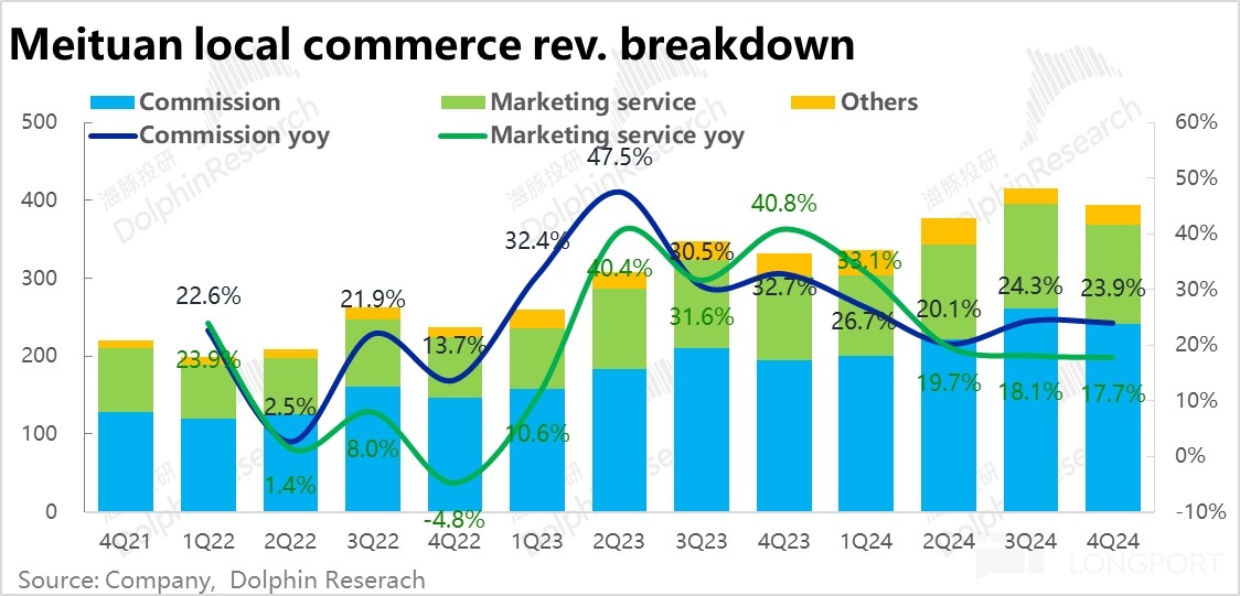 2、佣金和廣告營收的同比增速分別為 23.9% 和 17.7%,兩者都較上季度增速放緩不到 1pct,同樣平穩,大概率暗示著底層到店&酒旅的 GTV 增速和上季大體相當、稍稍趨緩。