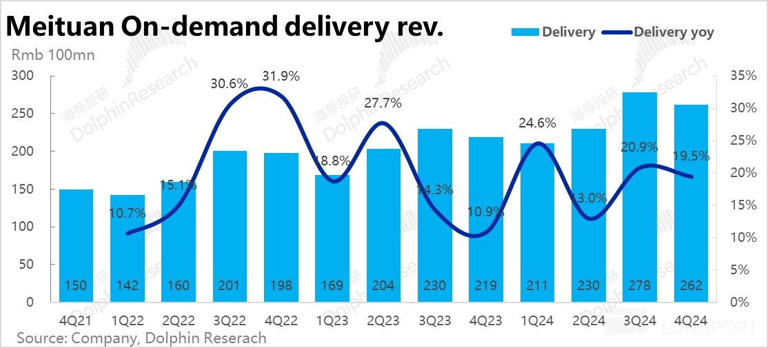 1、本季美團最後一項非財務的經營性指標--即配單量本季也不再公佈,導致我們無法在比較單量和相關收入間的增速差,來對業務變化趨勢進行一些判斷。 從財務信息上,本季配送收入的同比增速為 19.5%,較上季稍稍放緩 1.4pct。