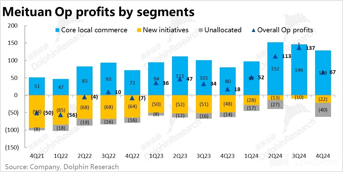 從三費同比增速最高也僅為個位數%,可見雖有海外業務的拓展,至少截止 4 季度並沒花費太多。美團整體依舊在控費提效,釋放利潤的周期内。也從側面暗示著,到 4 季度時美團面臨的競爭環境還是比較寬松和平穩的。