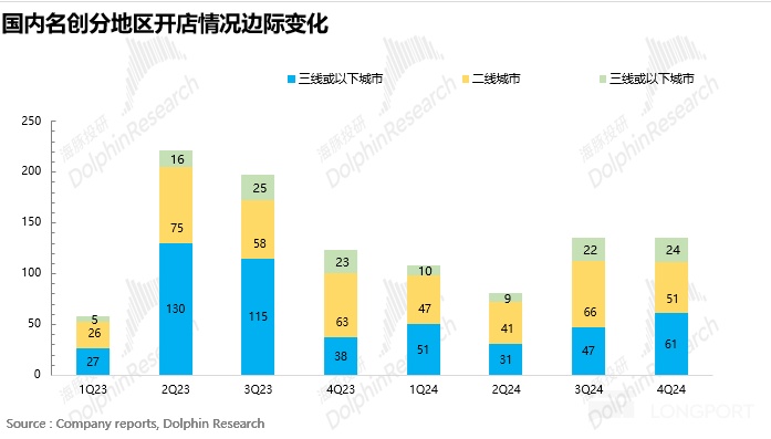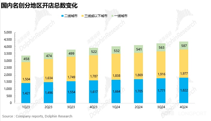 國内門店 Q4 開店節奏保持平穩,從結構上看,公司加大了三綫&以下城市的開店力度,符合海豚君的預期,畢竟當前公司在一、二綫城市的核心商圈滲透率已超過 50%,且公司對新店的審核力度會明顯提升。