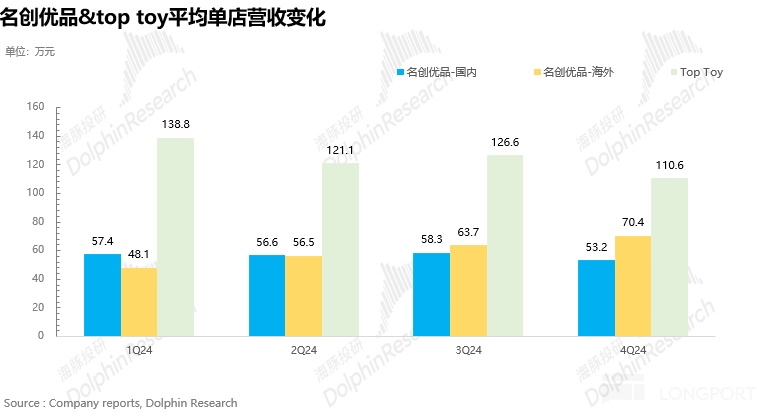 3、國内同店銷售小幅下滑,海外仍在爬坡。得益於各類促消費政策的推出,Q4 消費環境邊際改善使得國内同店銷售下滑幅度環比 Q3 有所收窄,一二綫城市同店恢復程度優於低綫城市;海外市場由於當前門店基數較低,單店營收仍處於爬坡階段,Q4 哈利波特 IP 對海外單店營收貢獻較大。