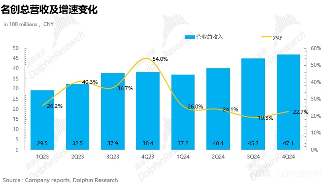 24Q4 公司實現營收 47.1 億元,同比增長達到 22.7%,小超市場預期(48.4 億元),小幅 miss 了彭博一致預期(48.1 億元)