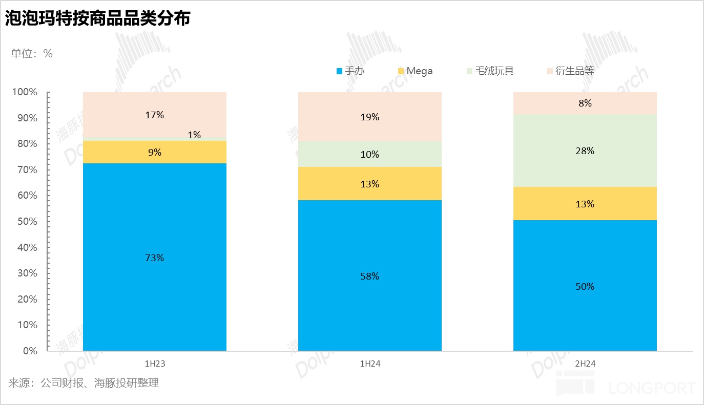 4、毛絨玩具佔比大幅提升;從産品品類上看,以盲盒為代表的手辦佔比持續下降,取而代之的是 ASP 更高的毛絨玩具係列的爆發式增長,佔比從上半年不到 10% 大幅拉升到 30%,