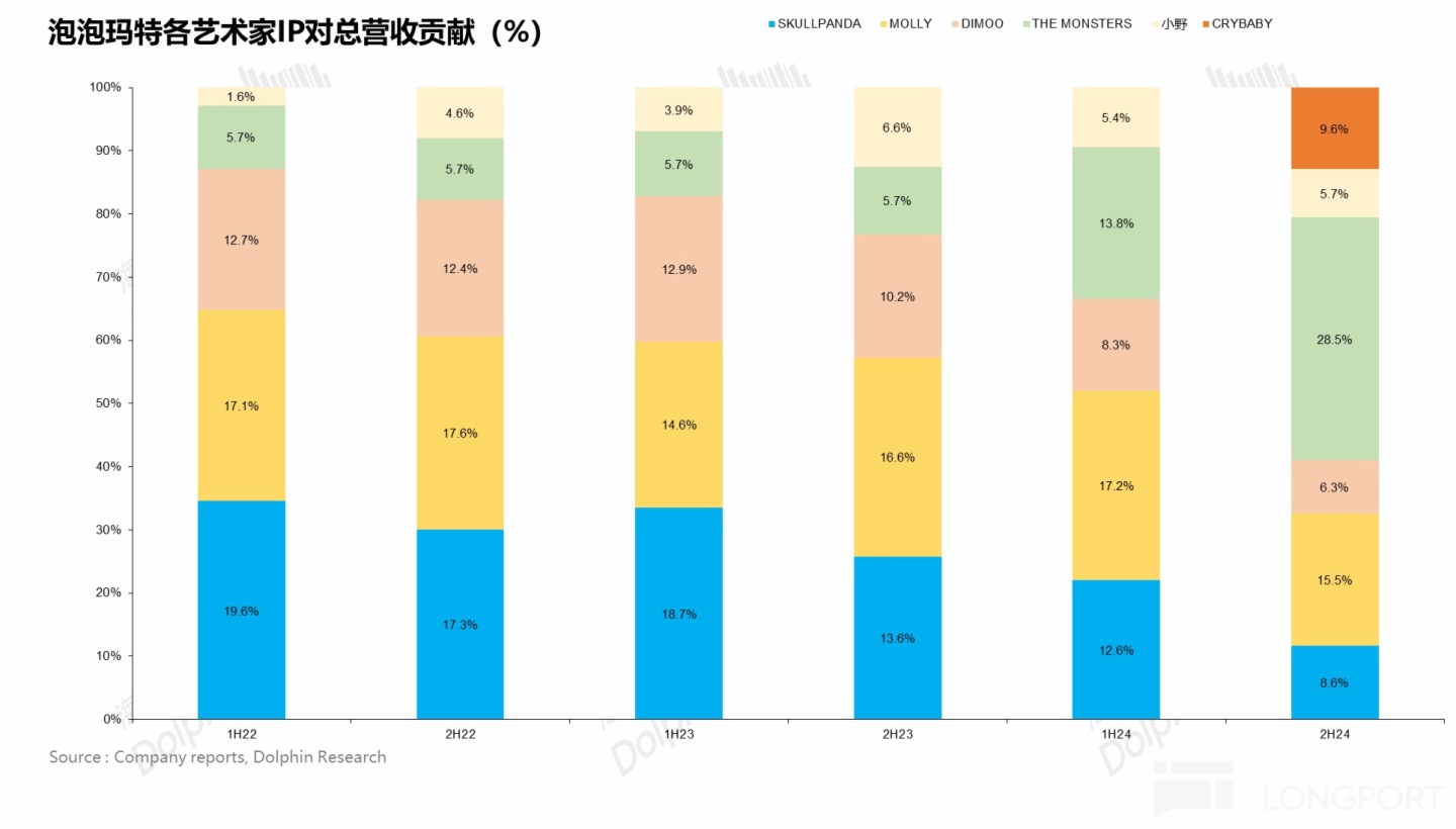 而其他核心 IP 包括 SKULLPANDA、DIMMO 等雖然增速有所放緩,但對整體業績影響不大。本質反映的是公司 IP 創造運營機制不斷成熟,單一 IP 熱度的下滑對公司的影響在逐步減弱。