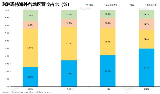 分地區看,東南亞仍然是下半年增速最快的地區,通過不同店型(主題店、快閃店)進行加密開店,持續享受 IP 藍海階段爆發期的紅利,在海外營收的佔比達到了 50%。