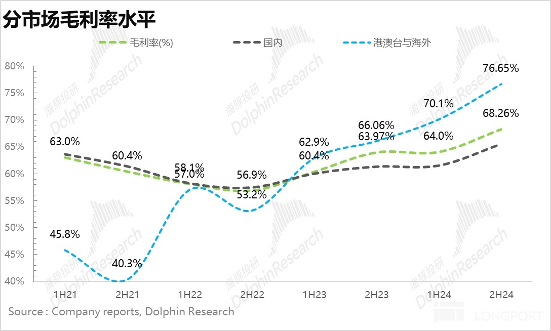 一方面,高毛利的海外業務佔比持續提升(海外毛利率比國内高 10% 左右),疊加産品結構優化,公司在下半年毛利率創新高,達到 68.3%。此外,公司在電話會表現 2025 年海外業務佔比或超過 50%,也就意味著公司整體毛利率有望繼續走高。