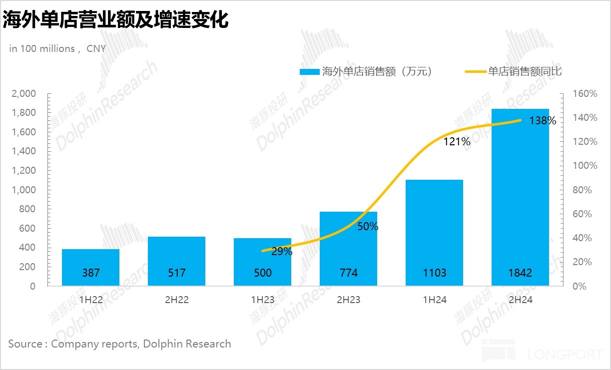24 年下半年的成長爆發並不是開店驅動的,而是門店坪效驅動,由於海外&國内都處於快速爬坡期,因此開店空間更是遠沒有到天花板。