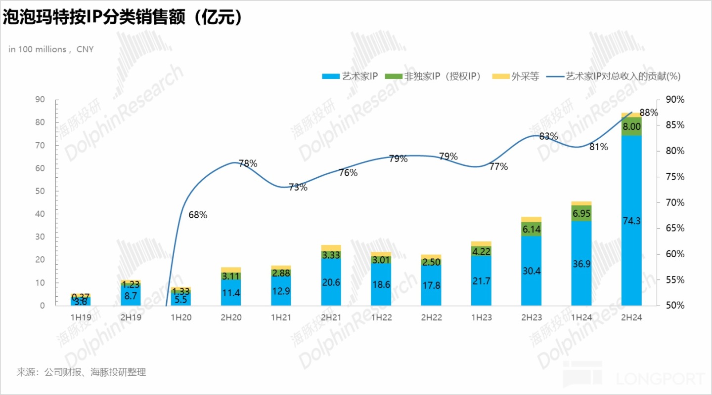 從各 IP 對業績的貢獻上看,藝術家 IP(公司獨家 IP)佔比從上半年 81% 進一步提升至 88%,創歷史新高,表明公司更加注重原創 IP 對於公司的價值。