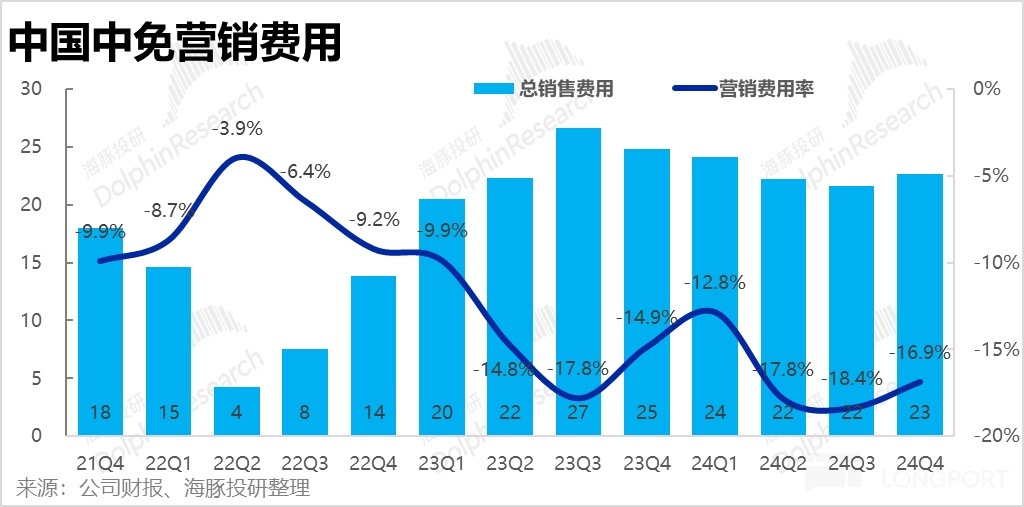 前者出境購物的分流,隨著國際航班量近期已修復到 80%,後續影響大概率會逐步走弱。但後者能否有好轉,海豚投研認為並不能報過高的期望。但目前定價隱含的要求 25 年業績一定會觸底反彈,並不夠保險。