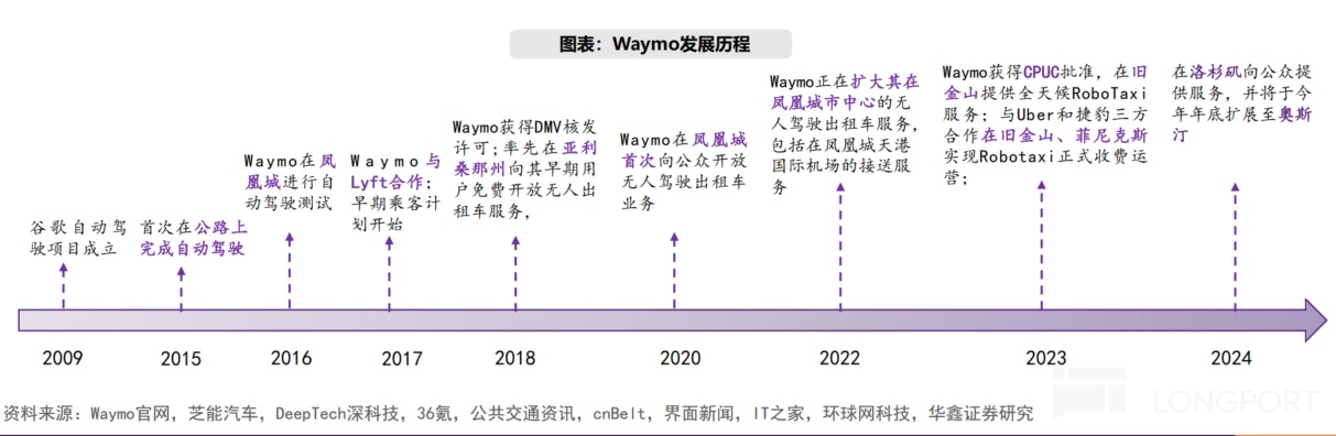 下圖簡要梳理了Waymo在2009年以谷歌旗下自動駕駛項目部門的身份成立,與2020年首次在鳳凰城向公眾開放無人駕駛網約車服務,至今已拓展到在4個市場提供公眾服務的發展史,我們就不展開敘述。
