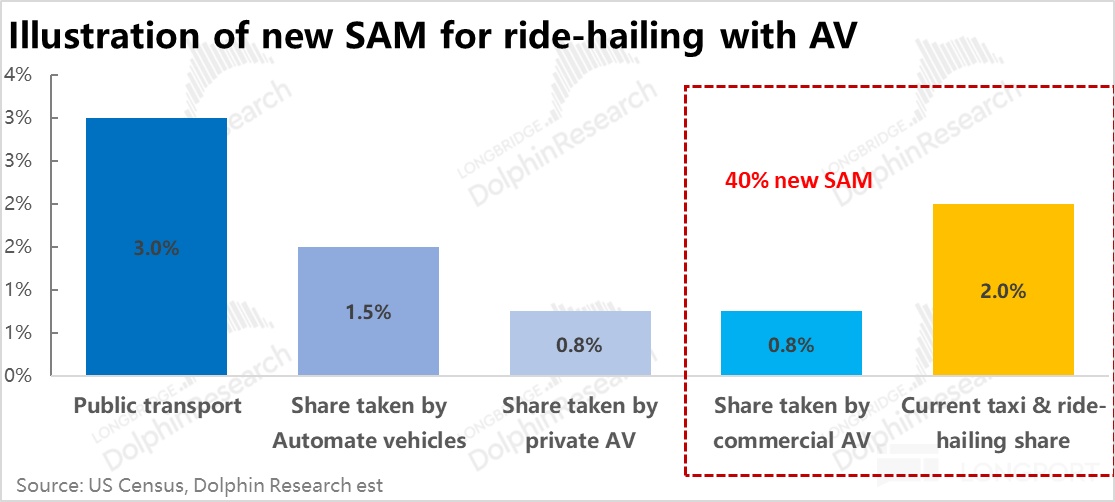 根據下圖測算,從公共交通搶來的使用場景,能提升相當於網約車+出租車等運營車輛當前市場規模(按量)40%的增量市場空間。