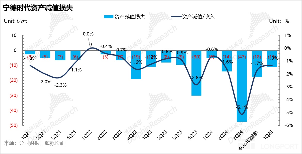 2025 年一季度資産減值 11 億,環比上季度 18 億繼續下滑 7 億,由於寧王的資産減值主要分為: