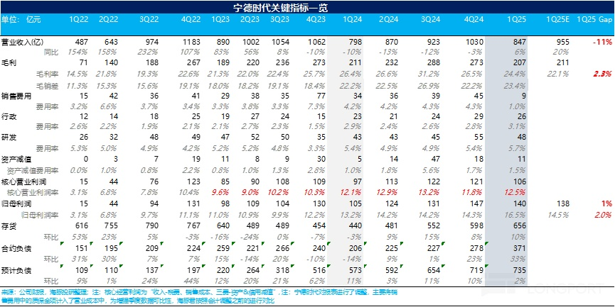 根據管理層業績會披露,本季度電池實際銷量 120Gwh,而市場對於 2025 年一季度的銷量預期都還在 130-140Gwh,所以實際出貨量和市場預期之間差不多有 10-20Gwh 左右的預期差,這也是收入不及預期的主要原因。