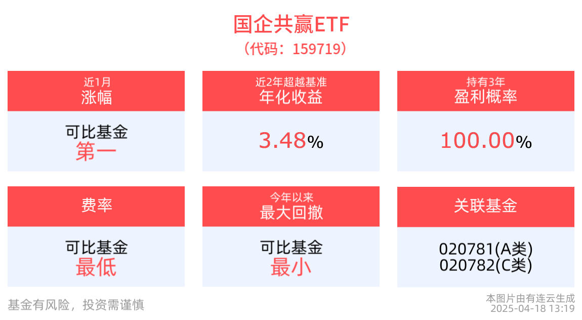 截至2025年4月18日 13:12,國企共贏ETF(159719)下跌0.13%,最新報價1.49元。拉長時間看,截至2025年4月17日,國企共贏ETF近1周累計上漲1.71%,漲幅排名可比基金1/3。