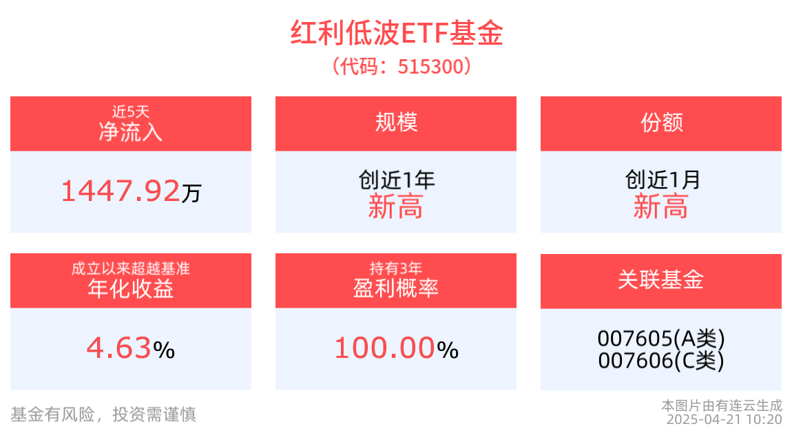 流動性方面,紅利低波ETF基金盤中成交2238.43萬元。規模方面,紅利低波ETF基金最新規模達53.78億元,創近1年新高。份額方面,紅利低波ETF基金最新份額達39.42億份,創近1月新高。資金流入方面,紅利低波ETF基金最新資金淨流入2043.76萬元。
