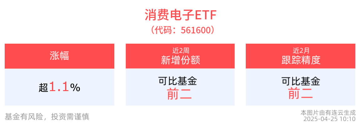 消費電子ETF(561600)上漲1.17%,最新價報0.78元。拉長時間看,截至2025年4月24日,消費電子ETF近1周累計上漲0.79%。