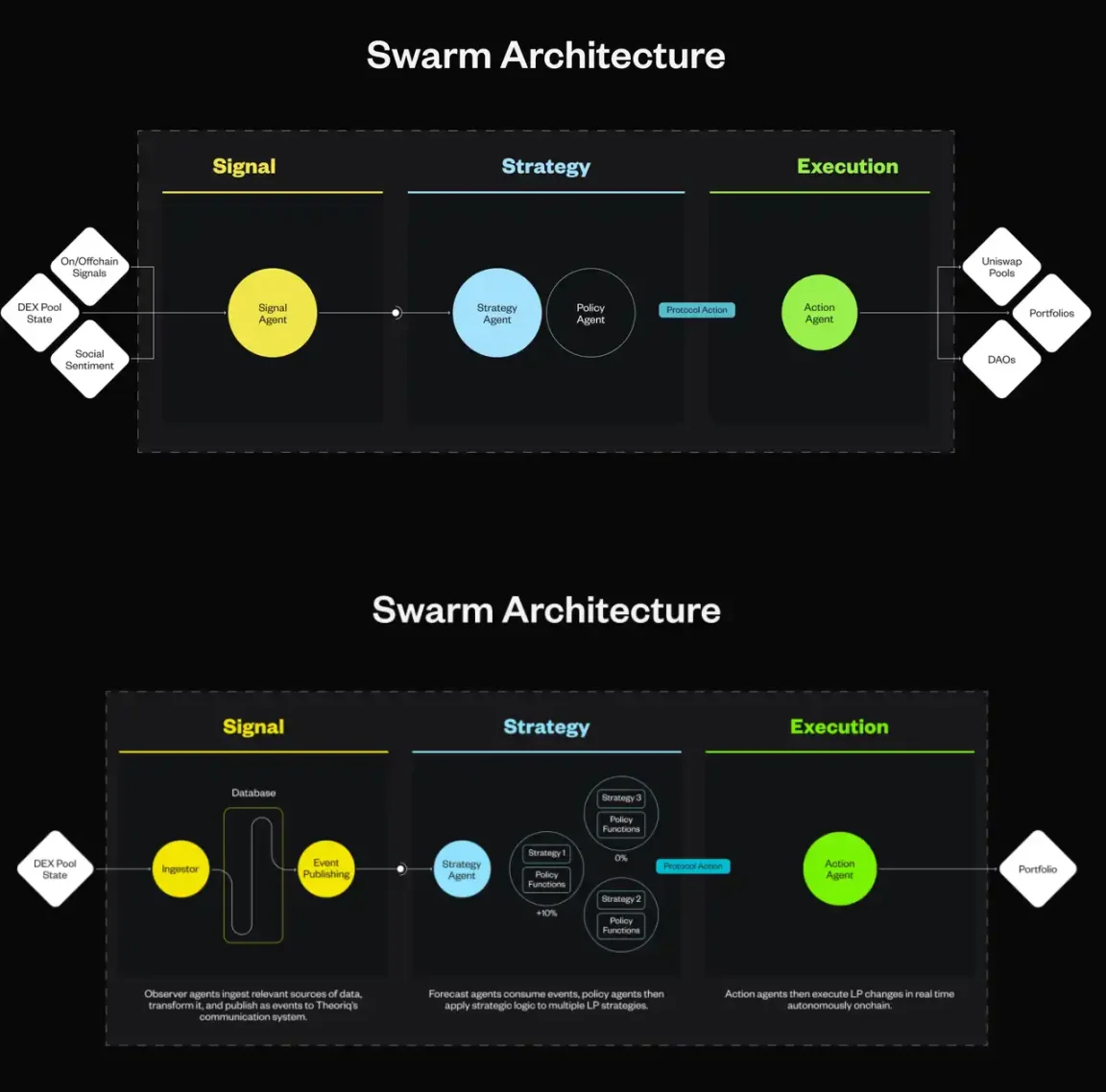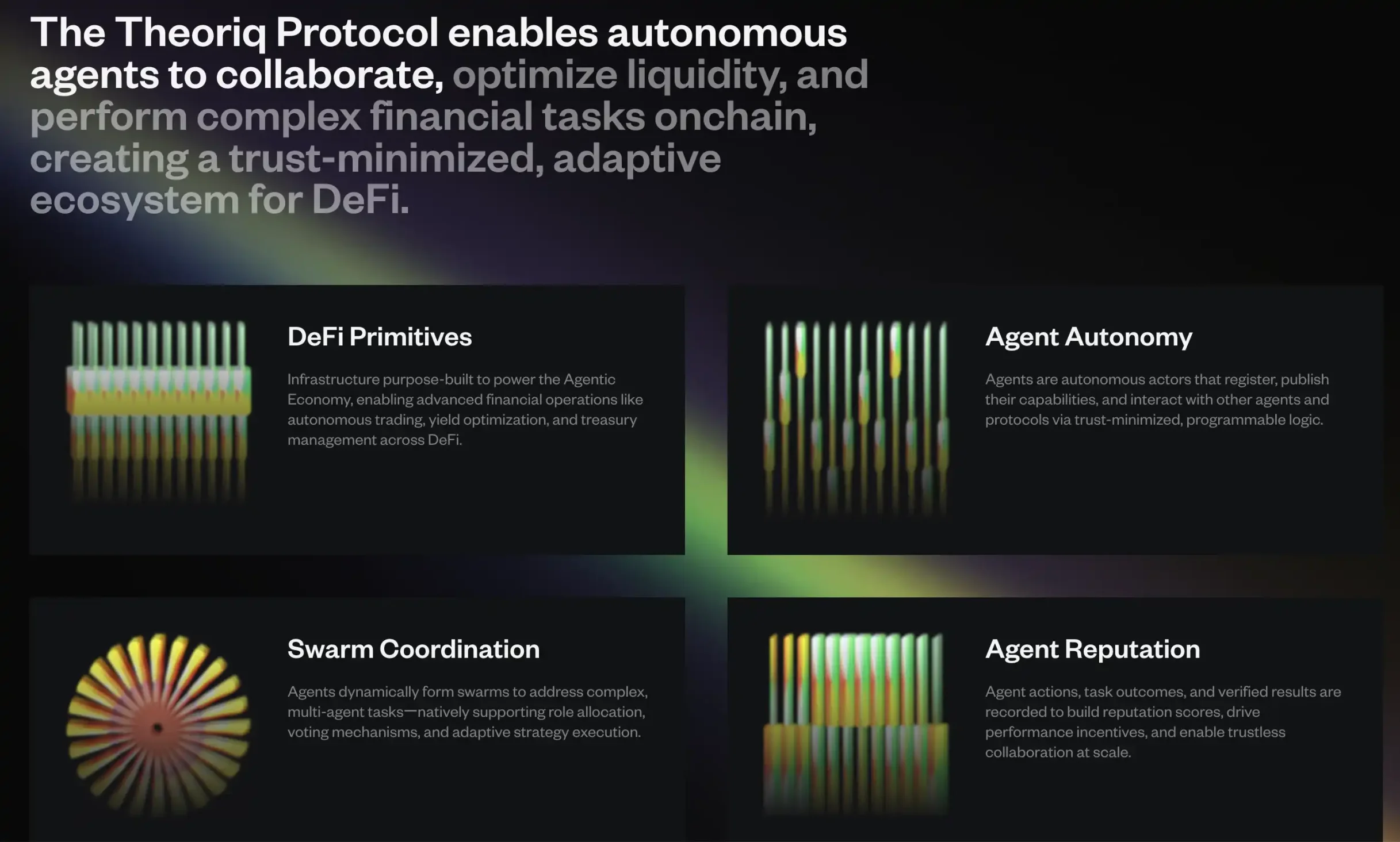 Theoriq 是一種模塊化、可組合的 AI 代理基礎層,功能據稱也十分強大,包括機器學習、多 Agent 蜂巢合作、以及 DeFAI 的概念。所包含了當前幾乎所有火熱的概念,不管是哪一種已經有太多「前輩」,前仆後繼的想要完成,不免讓人心生「它跟其他 AI 有什麼區別」的想法。