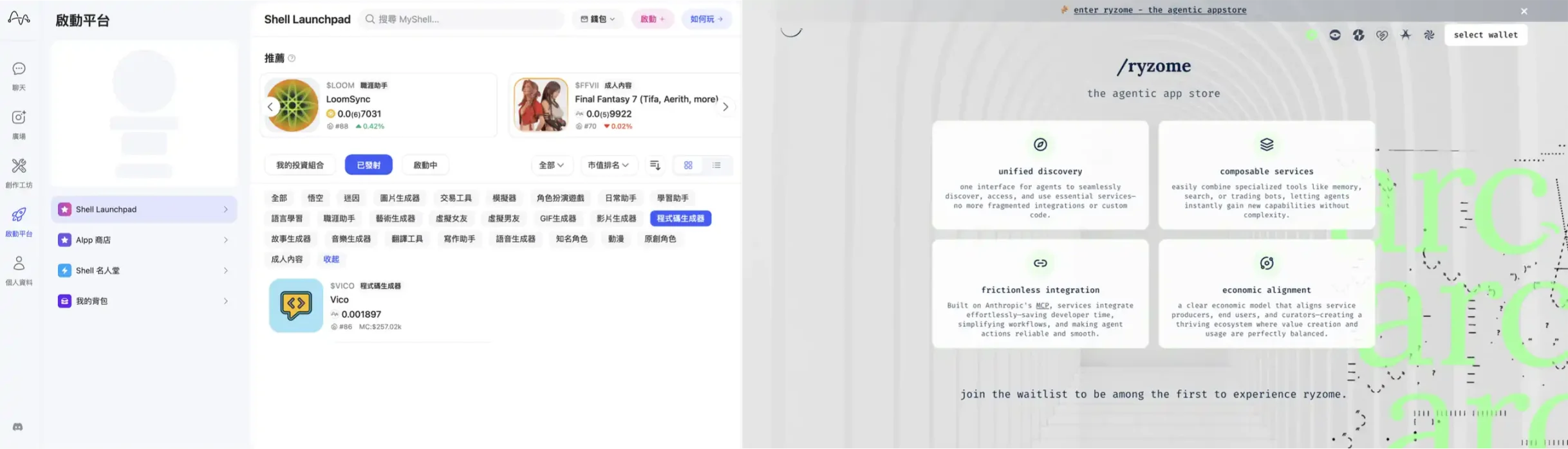 而 Arc 計劃上新的 Agentic App Store Ryzome,以及 Myshell 已經存在的 AIApp Store,前者還未正式上綫,後者也缺乏活躍度,出現的産品大多大同小異。