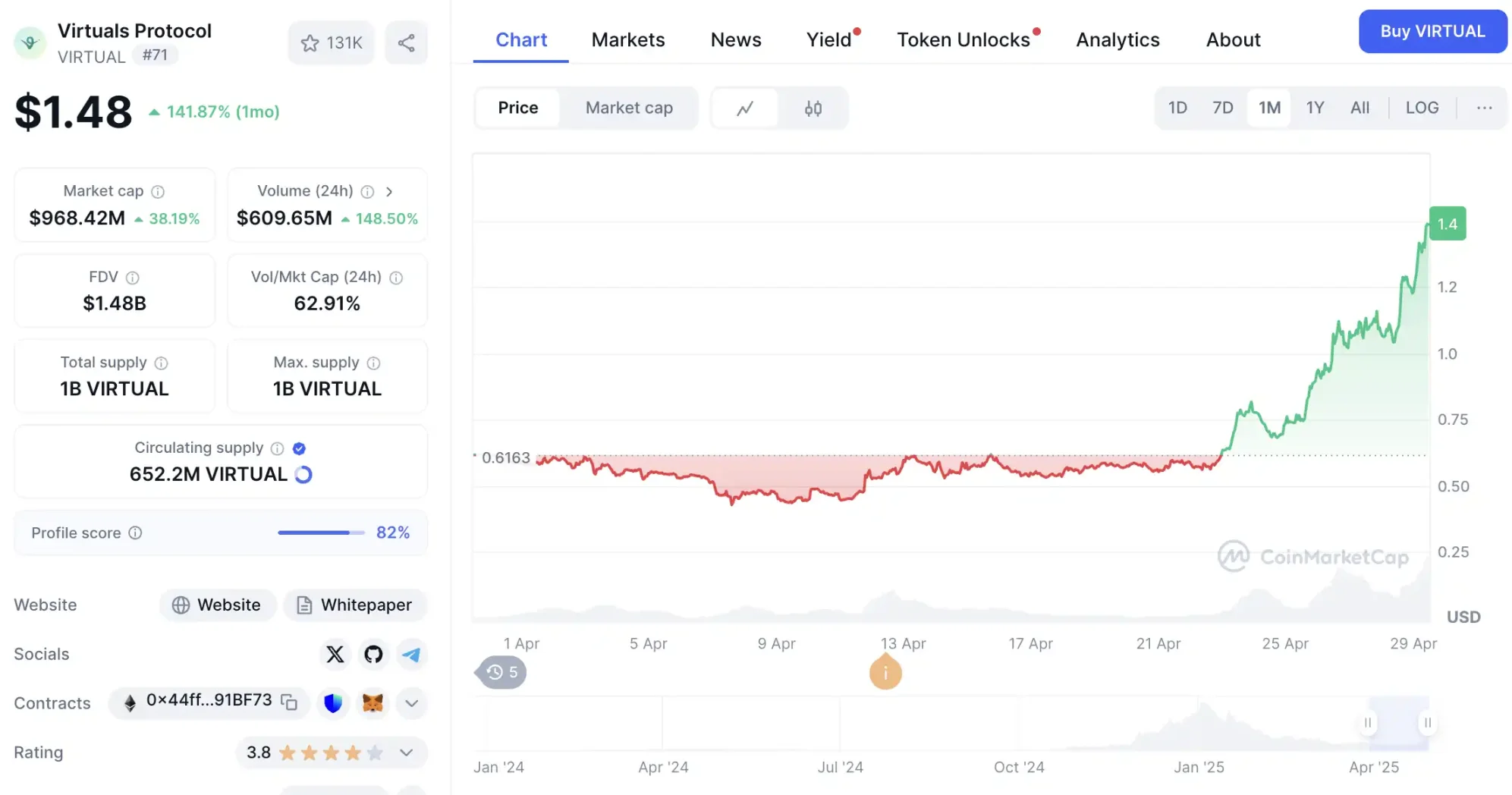 Virtuals 在熊市持續 Build,準備了多個更新,在這個 AI 市場回暖的一瞬間,將準備的所有東西高頻率的丟給了市場。僅僅一周,幣價便上漲了 3 倍有餘,市場反響熱烈。