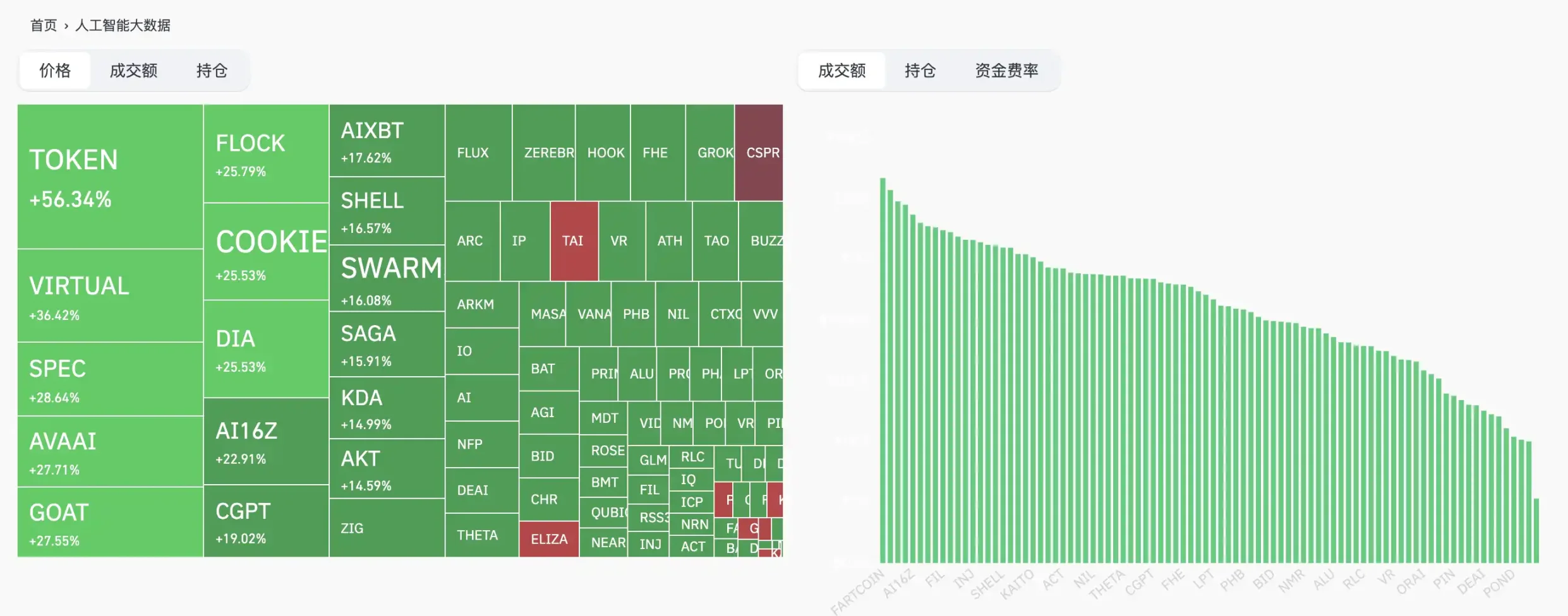沒有 TG/Discord 社區、沒有項目資料、沒有創始人三無産品的 FARTCOIN 依舊強勢,作為資本推動文化的典範領先 AI 整體市場提前啓動,僅兩周就將 3 億多美元市值推至 11 億美元,而近期的漲勢也讓許多做市商不得不在市場上小額買入現貨,從而形成了持續上漲區間。